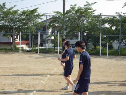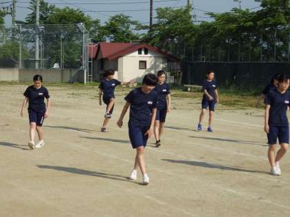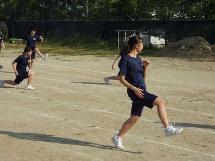 陸上部の活動の様子です。みんな息の合ったアップをしています。明るく意欲的に取り組んでいます。