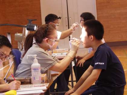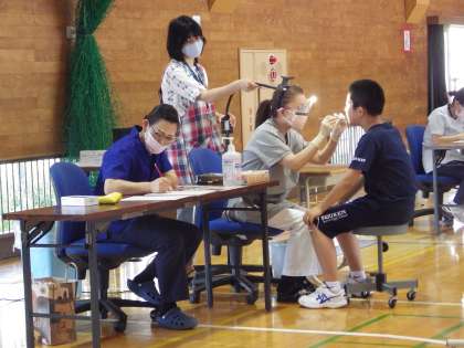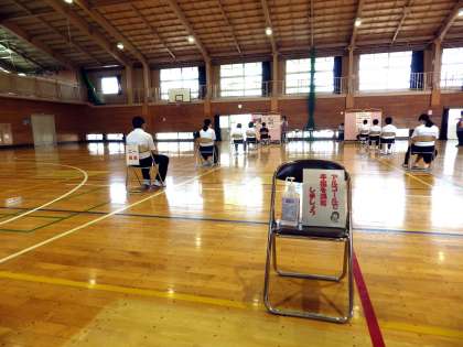 本日は1年生の歯科検診の日です。密を避けるために場所は体育館、待機時は十分な間隔を空けて実施しました。歯の状態を先生が係の方に伝達するために静かにする必要があるのですが、体育館の中だけではなく、外で待っている生徒も私語一つなく待つことができました。