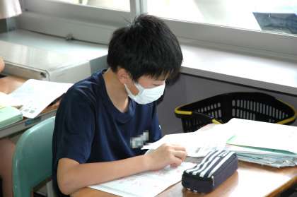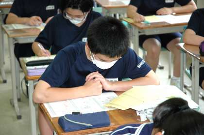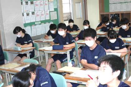 2年2組の理科の授業でも定期テストが返され、担当が解説を行っていました。みんな真剣に聞いていますが、時折ユーモアにあふれる解説を聞いて笑顔があふれていました。