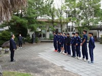 校長先生から選手の皆さんに、試合だけでなく、礼儀やあいさつ、態度などでも、行健中生として誇りをもって頑張ってくださいとの、激励がありました。