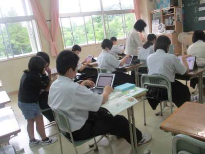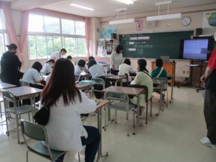 1年生の英語の様子です。Unit3 Part2「休日にやりたいこと」「なりたい職業」を英語で表現しました。みんなうまくできたかな?