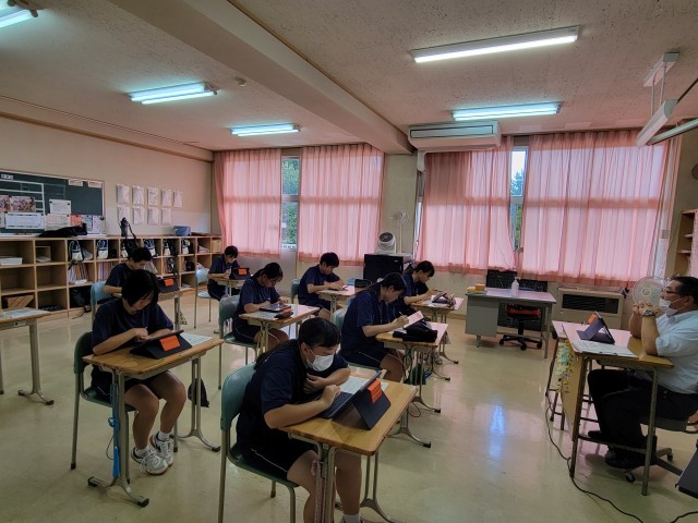 本日5校時目、1・2年生を対象にオンライン方式のテスト体験を行いました。これは、今後導入が進むCBT(Computer Based Testing)形式に慣れることを目的としています。国語・数学・英語の教科問題に加え、基本的なCBT操作スキルを確認できる問題に挑戦しました(今回はリスニング・音声録音問題は除外)。生徒たちは、オンラインテストに真剣に取り組み、新しい学習環境への順応性の高さを見せてくれました。今回の体験を活かし、今後の学習に役立てていきます。