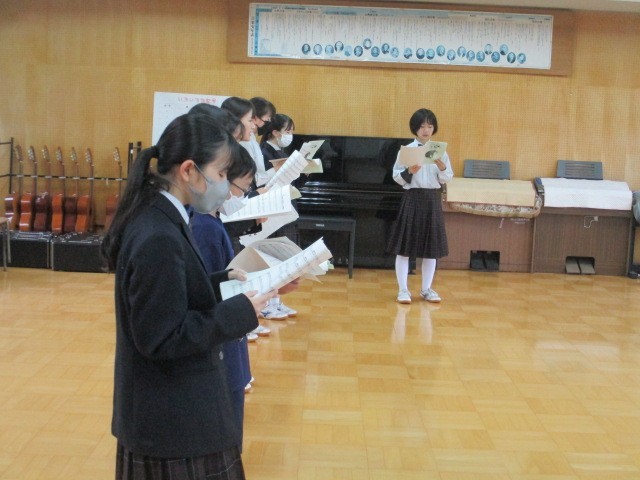 今朝も多くの生徒が参加し、朝の合唱練習を行いました。パートリーダーが中心となって声をかけ合い、日に日に歌声に一体感が増しています。澄んだ歌声が校舎中に響き渡っています。