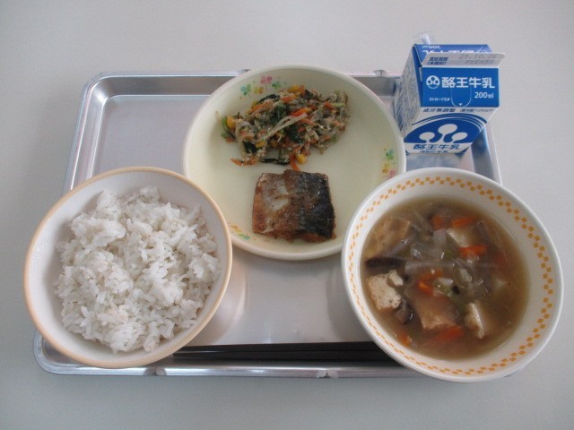 今日の給食は、「魚を食べよう!献立:さば」です。メニューは、麦ごはん、牛乳、さばのみそ煮、磯香和え、南蛮汁です。日本でよく食べられているさばには、「まさば」「ごまさば」「ノルウェーさば」の主に3種類があるそうです。コク深い味噌と生姜でじっくり煮込んだ「さばのみそ煮」が給食に登場です。味噌や生姜には、さばの持つ魚特有の臭みを消し、うま味をぎゅっと閉じ込める大切な働きがあります。さばは、良質なタンパク質やDHA・EPAを豊富に含み、学習や成長を支えてくれる優秀な食材です。今日もおいしい給食ごちそうさまでした。
