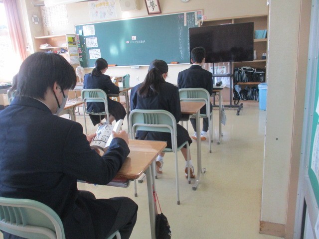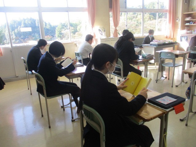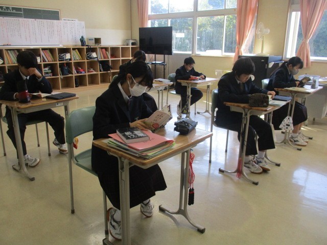 朝の時間を活用して読書に励んでいます。集中して本に向き合う真剣な眼差しが多く見られます。生徒たちの知的好奇心を満たし、確かな学力につなげるため、学校全体で読書活動を推進しています。