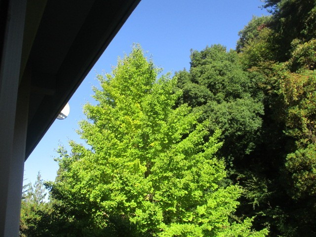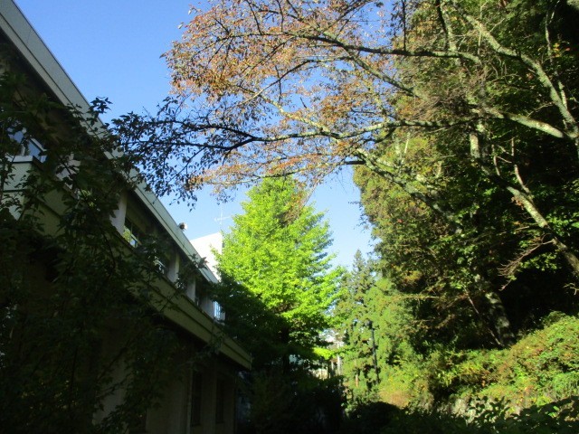 スカイブルーと緑のコントラストが美しい朝を迎えました。本日も生徒たちは元気に登校しています。