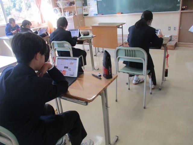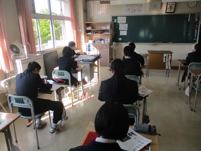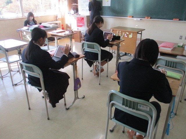 毎週水曜日の朝の時間は、タブレットを活用した新聞の閲覧に取り組んでいます。生徒たちは、紙面とは違うデジタルならではの多様な情報を活用しながら、社会への関心を高め、国内外のニュースや出来事に触れています。