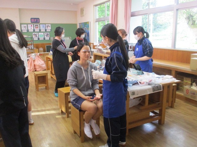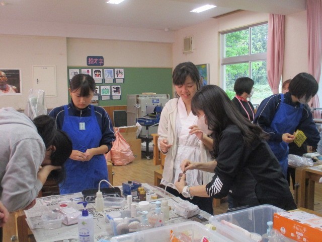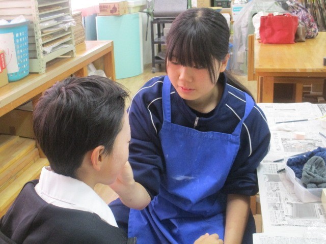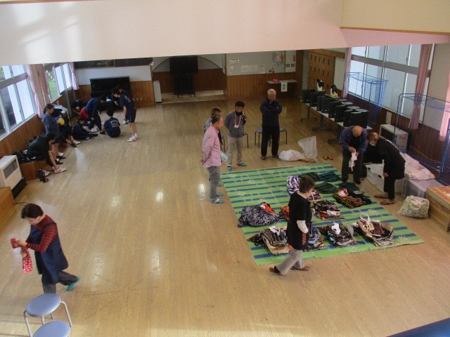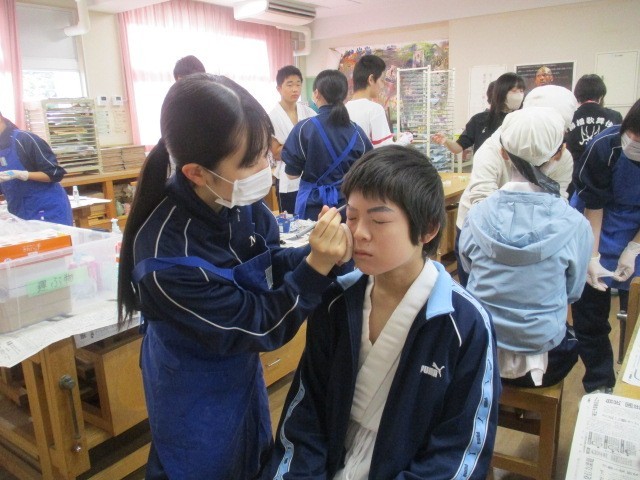いよいよ歌舞伎学習発表本番です。なかなか見ることのできない舞台裏に潜入しました。衣装・化粧準備の様子です。柳橋歌舞伎保存会の皆様にご指導いただき、長らく準備を進めてきた歌舞伎学習の発表が、いよいよ開演を迎えます。保存会及び地域の皆様にお手伝いいただき、重厚な伝統衣装をまとい、本格的な歌舞伎化粧を施しました。鏡の前では、普段の学校生活とはまったく違う、凛々しい役者の顔に変身していく生徒たちの姿がありました。化粧係の生徒たちは、真剣な眼差しで筆を運び、役者の顔を彩ります。これまでの練習の成果を発揮できるよう、精一杯演じます。