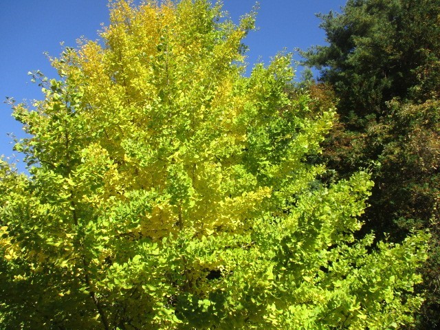 澄み切った青い空と紅葉の鮮やかなコントラストは、まさに秋ならではの絶景です。