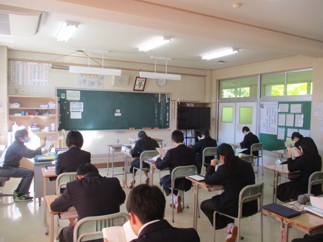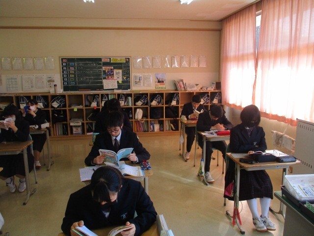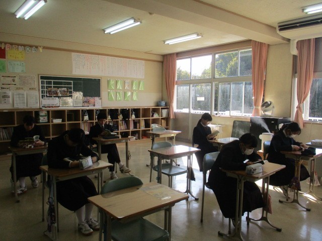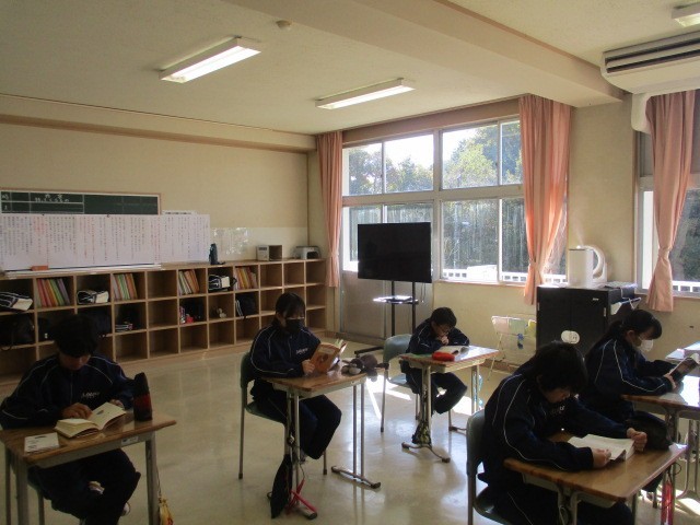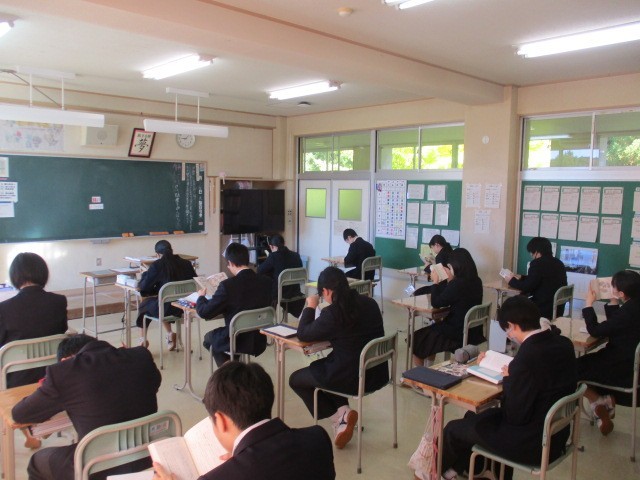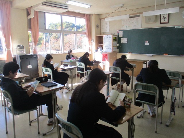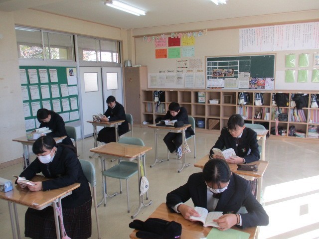 本日の1校時目は、全校生徒が一斉に取り組む「一斉読書」の時間でした。全校生徒と担任の先生方が、それぞれの教室で静かに本に向き合います。誰もが集中して読書を楽しむ、落ち着いた学びの時間になりました。