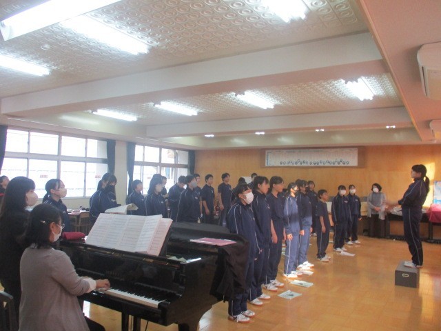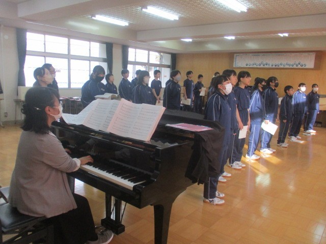 けんしん郡山文化センター大ホールで行われる郡山市中学校音楽学習発表会に向けて、全学年合同での合唱練習に熱が入っています。「正解」の曲の歌詞に込められた想いを表現しようと、生徒たちは心を込めた歌声とベストの発声を追求しています。本日、授業の様子を参観されていたスクールカウンセラーの先生も、その歌声に深く感動されておりました。先生は、若かりし頃の思い出に浸るとともに、御舘中の生徒たちのこれからの成長を願う気持ちがあふれたとのことです。生徒たちのひたむきな努力と美しいハーモニーは、聴く人の心にも大きな影響を与えています。本番のステージでも、最高の合唱を響かせますので、皆様、どうぞご期待ください!