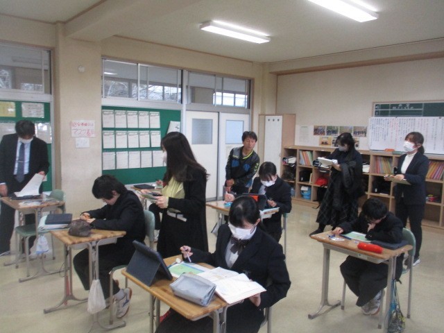 11月18日(火)、第4回校内授業研究会を実施いたしました。今回は1年生の数学の授業を公開し、教職員間で活発な研究討議を行いました。御舘中学校の教職員に加え、御舘小学校からも2名の先生方にご参観いただきました。系統的な学びの接続、小中連携を図る貴重な機会となりました。今回の授業では、生徒たちの主体的・対話的で深い学びの実現を目指し、様々な教育的な工夫が凝らされました。生徒一人ひとりの学びが保障された充実した時間となり、教員にとっても大きな学びを得ることができました。