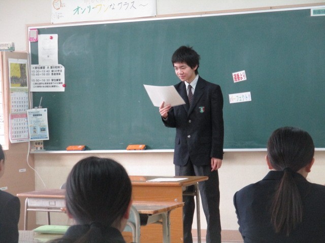 豊かな緑を湛えていた木々も葉を落とし、校庭には落ち葉の絨毯が広がり始めました。今朝は先生方の打ち合わせのため、いつもより早めの学活です。