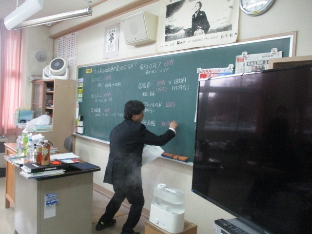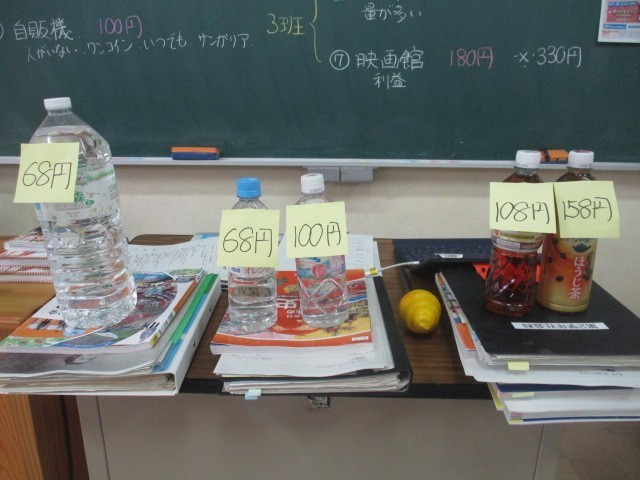 本日の授業参観、3年生の公民では、「コンビニ、自販機、ドラッグストア、映画館など、場所によってペットボトルの価格が違うのはなぜか?」という身近な疑問をテーマに、経済の仕組みを追求しました。一人ひとりが考えた価格差の理由を出し合い、「仕入れ価格の違い」「提供する場所の家賃・地代」「人件費」「利便性」など、様々な要素が関係していることに気づきました。身近な例から社会の仕組みを真剣に考える大変有意義な授業となりました。