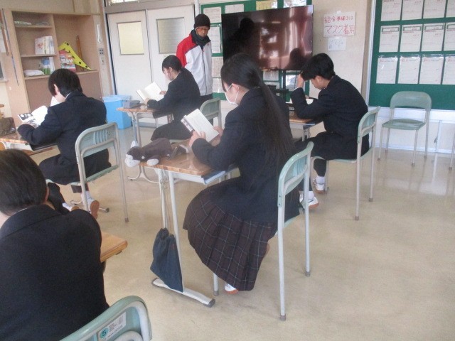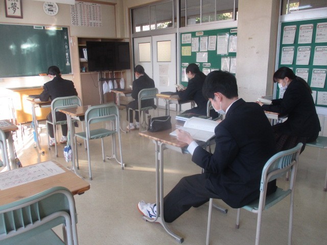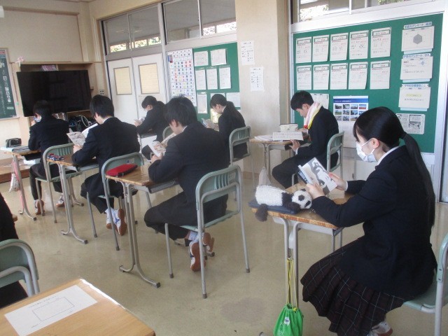 雲がうっすらと広がる空ですが、すっきりと晴れた朝を迎えました。月曜日の朝は読書の時間です。生徒一人ひとりが思い思いの本に向かい、言葉の世界に没頭しています。