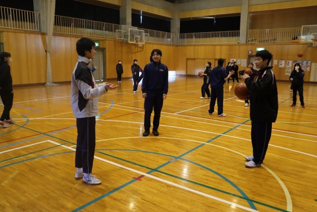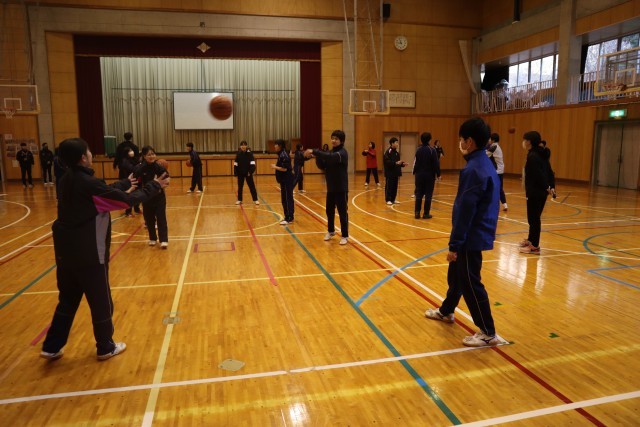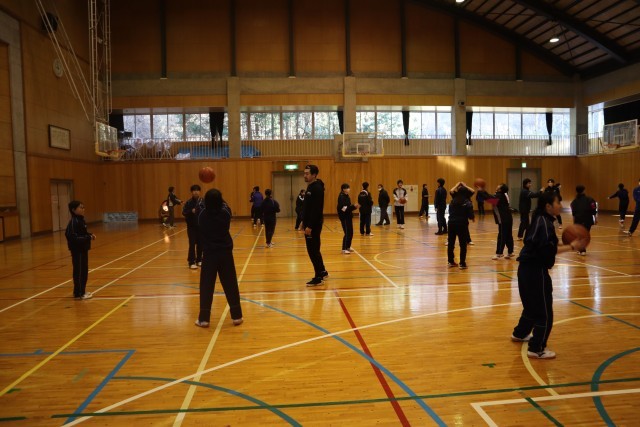 前半の運動プログラムの様子です。ワイリー選手と共に楽しく体を動かして爽やかな汗を流しました。