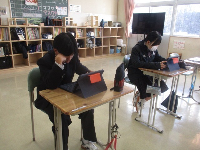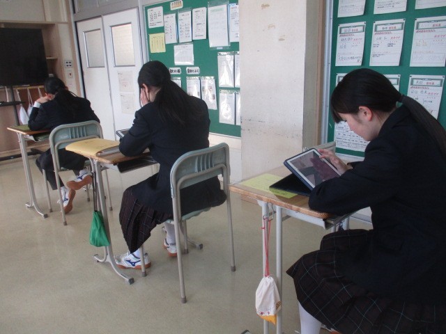 木曜日の朝学習の時間に「スタディサプリ」を行っています。各教室を回ると、どの学年も集中して画面に向き合う姿が見られました。自分のペースで進められる利点を活かし、苦手克服や応用問題に挑戦するなど、意欲的に取り組んでいます。