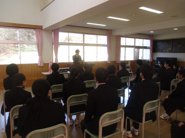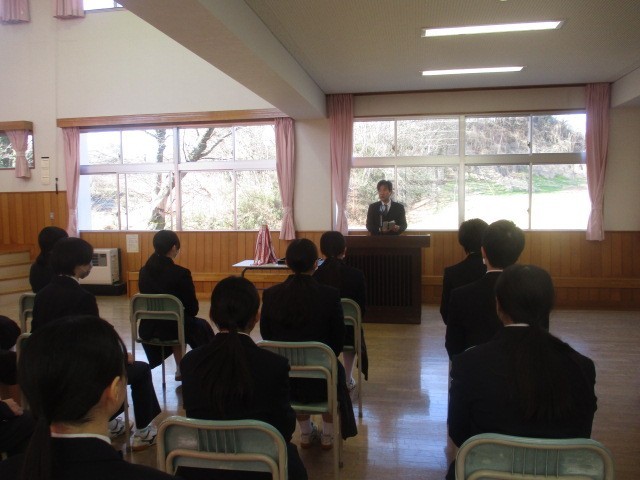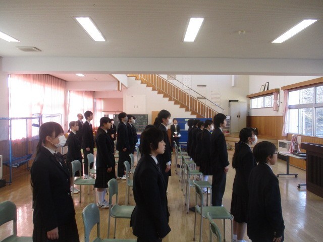 式では、校長先生から2学期の振り返りと冬休みの過ごし方についての式辞があり、生徒たちは真剣な表情で耳を傾けていました。