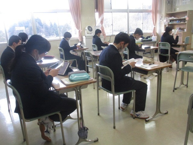 毎週金曜日の朝は「読書の時間」です。生徒たちはそれぞれの本を手に、静かな朝の時間を過ごしています。