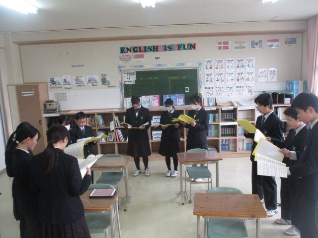 今日は1・2年生で合唱を合わせました。うまくいかないところは、お互いに声を掛け合って修正しています。完成度はまだまだ途上にあるものの、生徒間での相互指摘が見られ、練習のたびに歌声が一つにまとまってきています。