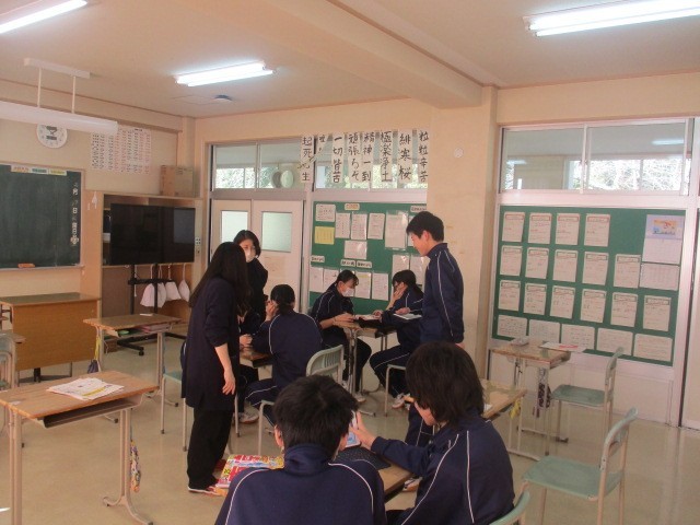 5校時の「生き方」の学習の時間、2年生は修学旅行に向けた準備を行いました。4月の出発まで残り時間も限られてきました。自分たちで計画した行程がスムーズに進むよう、移動時間や距離を緻密に計算しながら、班で協力して計画を練り上げています。