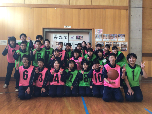 6校時の保健体育は、全学年合同でバスケットボールの授業を行いました。入念な準備運動とボールを使った基礎練習で体をほぐした後、チーム対抗戦(緑vsピンク)が行われ、随所に好プレーが飛び出しました。序盤はボールに選手が集まってしまう場面もありましたが、次第に華麗なドリブルで相手をかわしたり、息の合ったパス回しからシュートチャンスを作ったりと、学年を超えた連携が見られました。次々とゴールが決まるたびに歓声が上がり、大いに盛り上がりました。学年に関係なく、みんなでスポーツを楽しむ素敵な時間となりました。