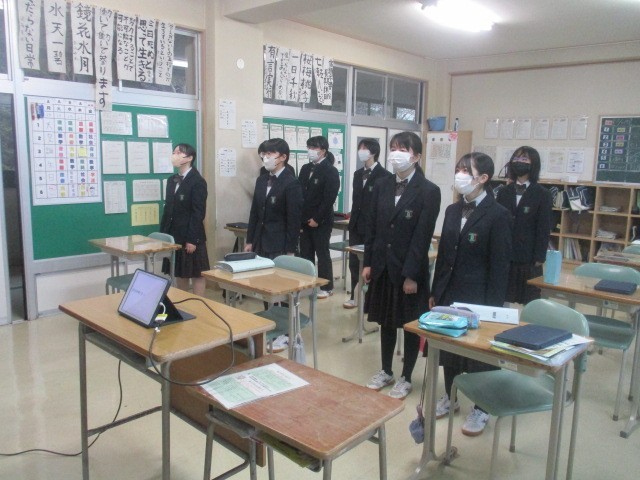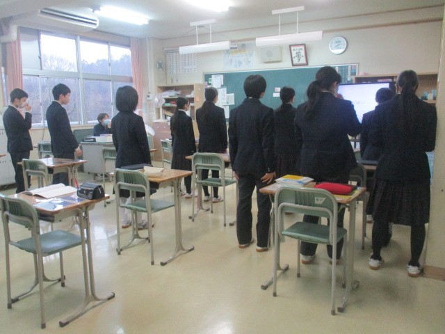 本日は朝からあいにくの雨模様です。少し肌寒い気温です。3階廊下の窓際には、3年生が家庭科で制作した色鮮やかな「クラッチバック」が並んでいます。個性が光る力作ぞろいです。生徒は本日も音楽室などで卒業式に向けて合唱練習をしています。2月も今週で終了です。