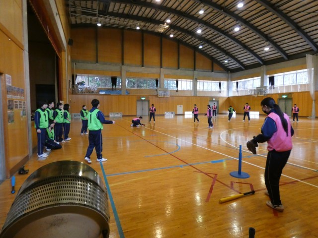 本日2・3年生合同の保健体育の授業で「Tボール」を行いました。「2026 WORLD BASEBALL CLASSIC」の開幕が待たれるところですが、御舘中体育館では一足お先に熱い戦いが開幕しました。バッターボックスに立つ生徒の集中力は、まさに侍ジャパンさながら。止まったボールを打つTボールは、野球やソフトボールが苦手な生徒も楽しみやすく、体育館には快音が響いていました。鋭いスイングから放たれる打球と、それを追うチームメイトの連携プレーが印象的でした。
