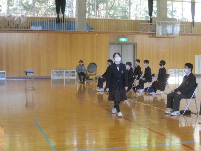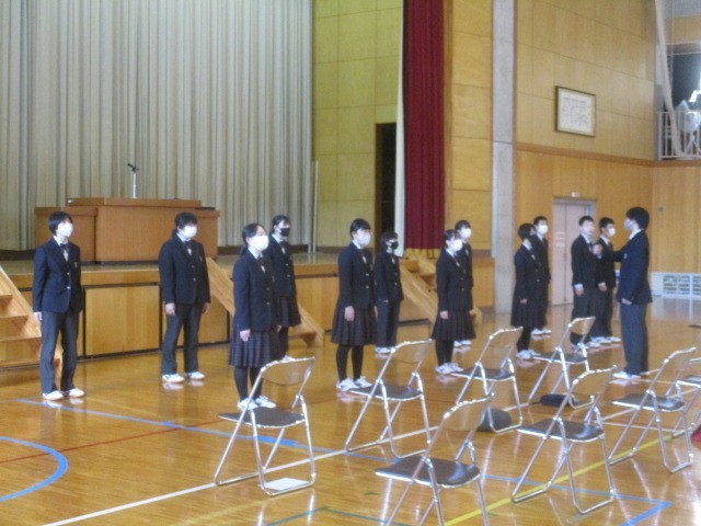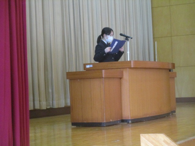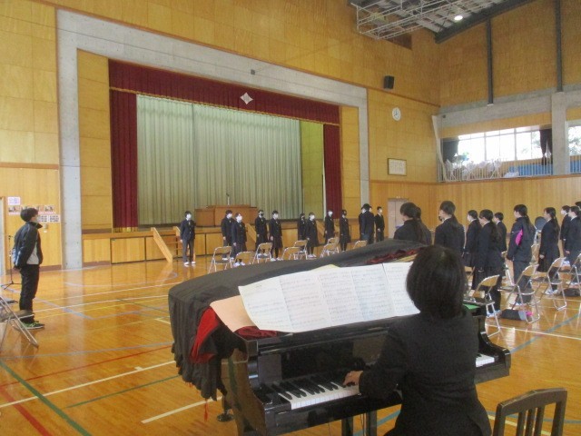 式は進み、在校生代表による「送辞」、卒業生代表による「答辞」へと続きました。その後の式歌、そして全校生徒による「校歌斉唱」。