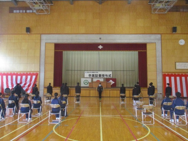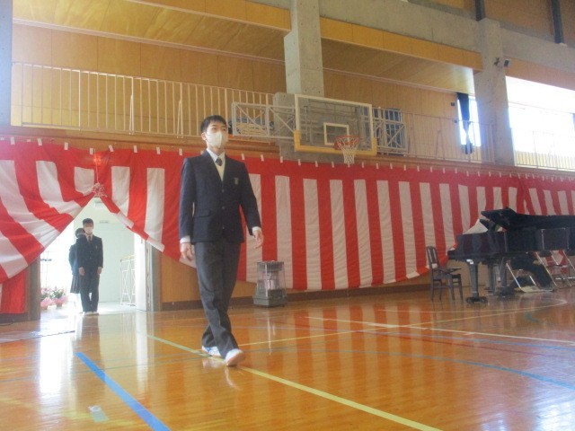 呼名に響く返事、そして校長先生の前に進み出る一歩一歩に3年間の成長が刻まれています。