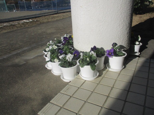 校舎の柱の周りを彩る色とりどりのパンジーは、用務員さんが卒業生のために心を込めて大切に育ててくれたものです。美しい花々が、卒業生たちの晴れ舞台に華を添えてくれました。今日からいよいよ1・2年生での生活が始まりました。頼りになる3年生が卒業して少し寂しいですが、4月からの進級を見据えて、学年のしめくくりをしっかりと行っていきましょう。