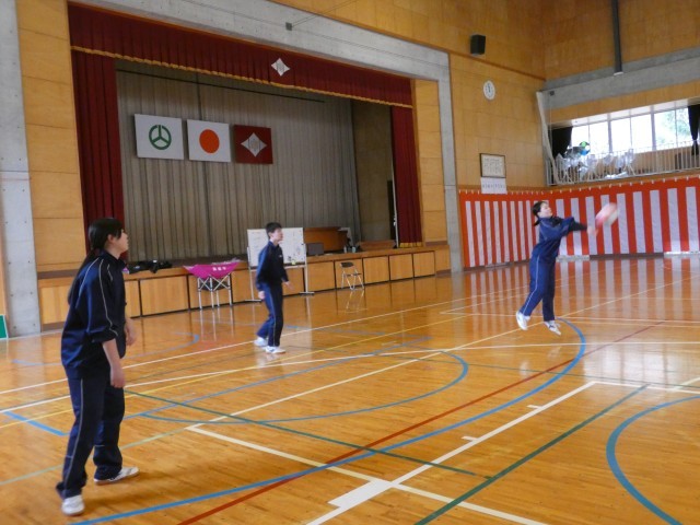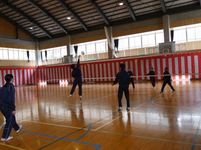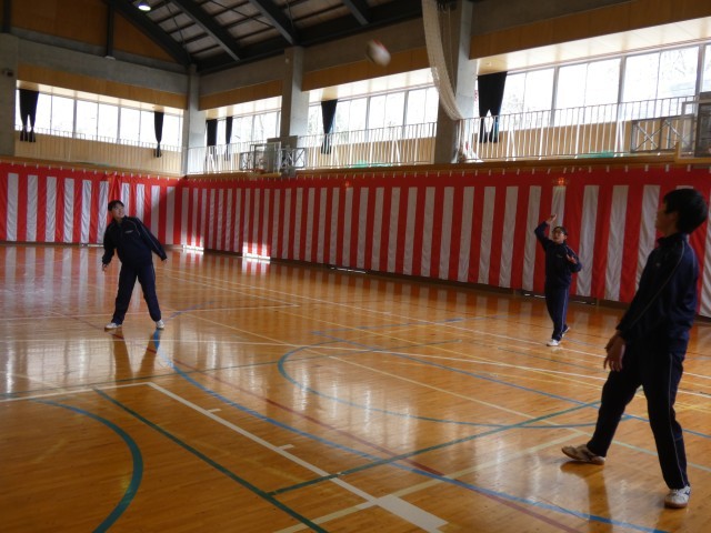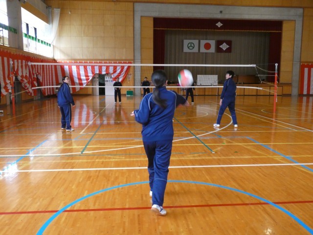 2年生の保健体育の授業で、バレーボールを行いました。少人数ながらも、入念な準備体操から元気にスタート。チームで協力してラリーを続けるためにルールを工夫し、白熱したゲームを展開しました。一人ひとりがサービスを丁寧に入れることを意識するなど、みんなで声を掛け合いながら一生懸命取り組んでいました。