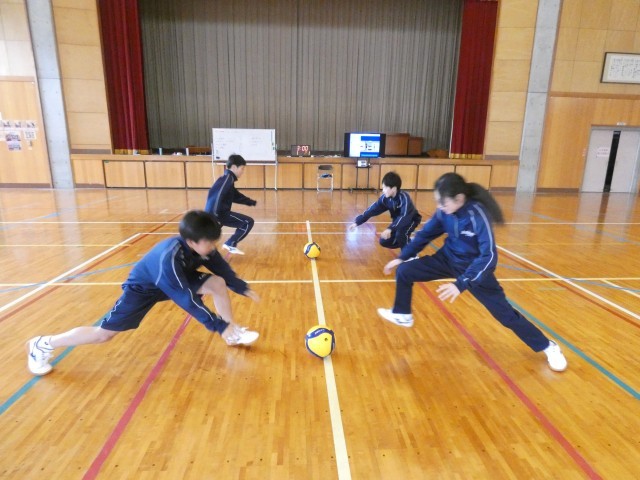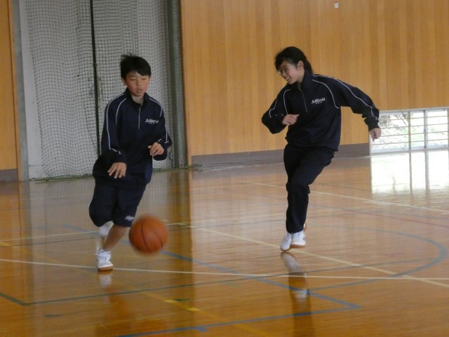 1年生の保健体育の様子です。ボールを使った体力トレーニングに元気よく取り組んでいます。生徒たちは楽しみながらも中学校の広い体育館をいっぱいに使ってしっかりと汗を流していました。これから楽しく体力を向上させていきましょう。