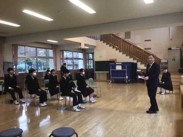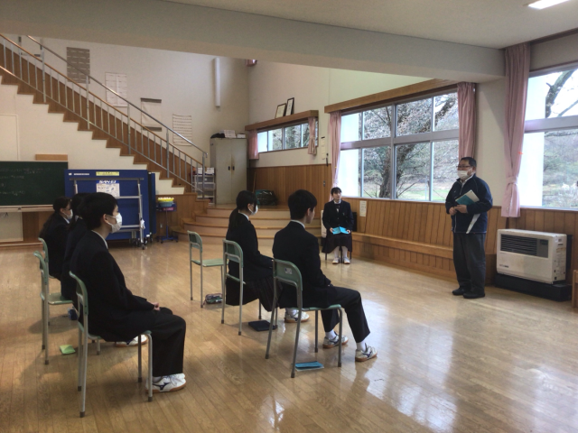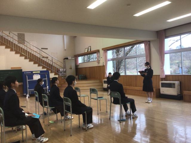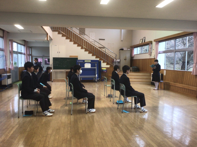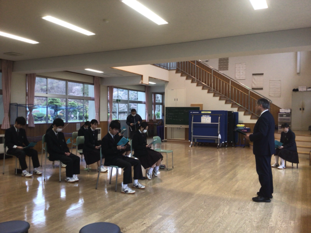 本日4月13日(月)から始まる修学旅行に向けて、3年生の「結団式」が行われました。実行委員長からスローガンの確認、校長先生から励ましのことばをいただきました。生徒たちは、しおりを手に準備万端といった様子です。3年生にとって、中学校生活最大の行事の一つである修学旅行。月曜日は早朝の集合となりますが、週末はゆっくり休んで、元気に3日間を過ごしてきてほしいと思います。