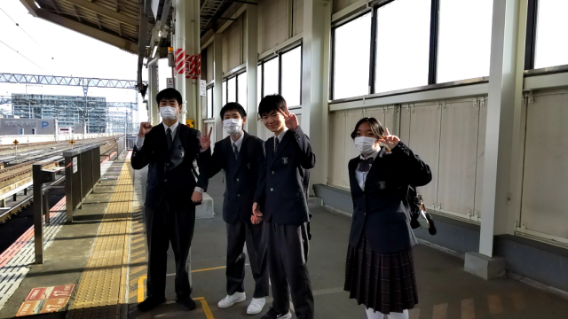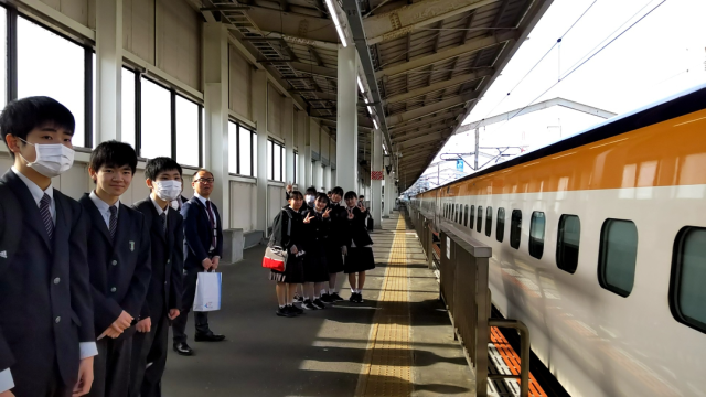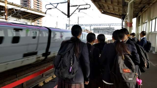 ホームで新幹線を待っています。