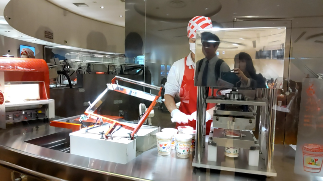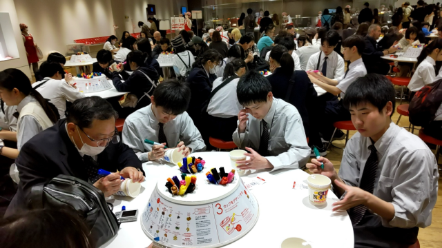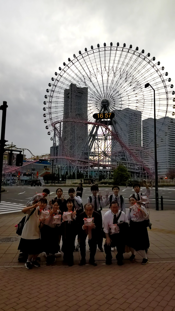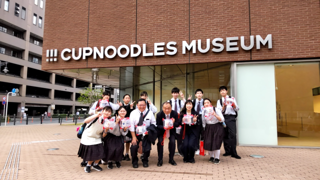 カップヌードルミュージアムで体験学習中です。終了後はみんなで集合写真を撮りました。