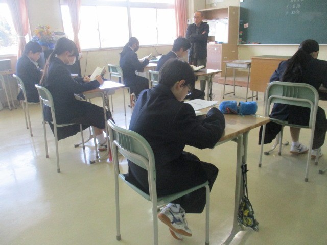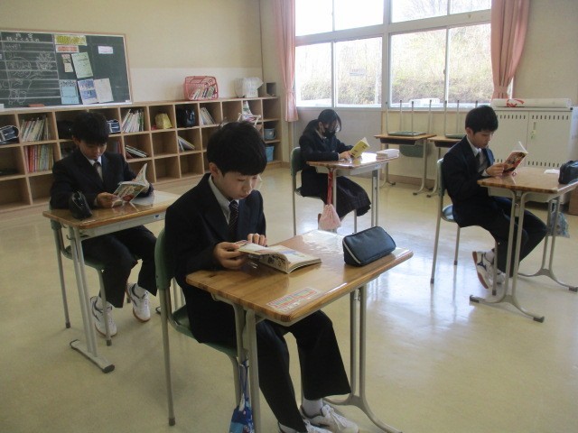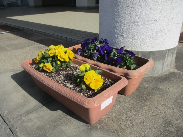 用務員さんが日々愛情を込めて育てているパンジーが黄色と紫の鮮やかな花を咲かせ、校舎周辺の桜とともに私たちの目を楽しませてくれています。朝の時間は全校生が読書に取り組んでいます。