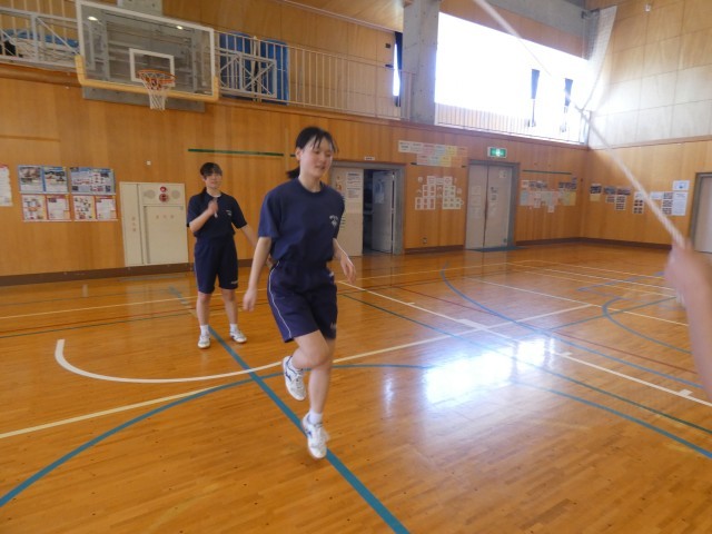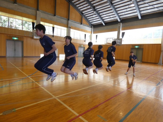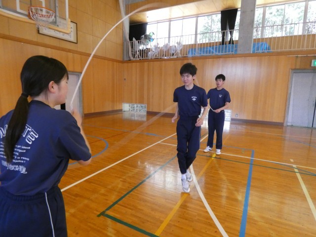 3年生にとって久しぶりとなる保健体育の授業が行われました。体育館いっぱいに広がり、大きく体を動かして縄跳びも活用し心身をほぐしていました。