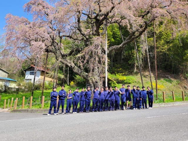 本日、ボランティア活動・社会奉仕体験学習の一環として「春のクリーン作戦」を実施しました。この活動は、地域の清掃を通して奉仕の精神を養うとともに、私たちの誇りである「地蔵桜」周辺の美化活動を通して郷土愛を深めることを目的としています。生徒たちは学校を出発し、通学路に落ちているゴミを丁寧に拾いながら移動しました。目的地である地蔵桜では、お弁当を味わい、国語科の学習として俳句を詠んだり、「春のフォトコンテスト」に向けた写真撮影を行ったりと地域の自然を五感で感じる素敵な時間を過ごしました。今回の活動にあたり、柳橋駐在所の方には安全確保のための巡回パトロールにご協力いただきました。また、地域の方々には集会所をお貸しいただいたほか、心温まる差し入れも頂戴いたしました。地域の皆様の温かい支えにより、生徒たちにとって忘れられない素晴らしい一日となりました。心より感謝申し上げます。