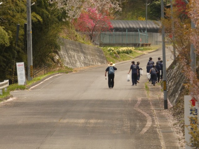 暖かな日差しを浴びた土の香りや咲き誇る花々の香りに包まれながら生徒たちは熱心にゴミ拾いに励みました。