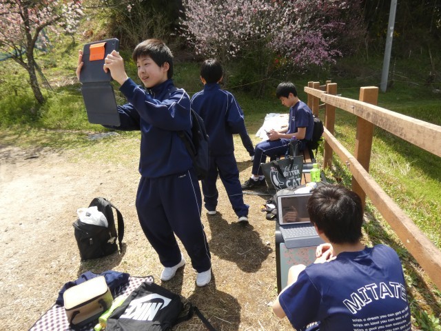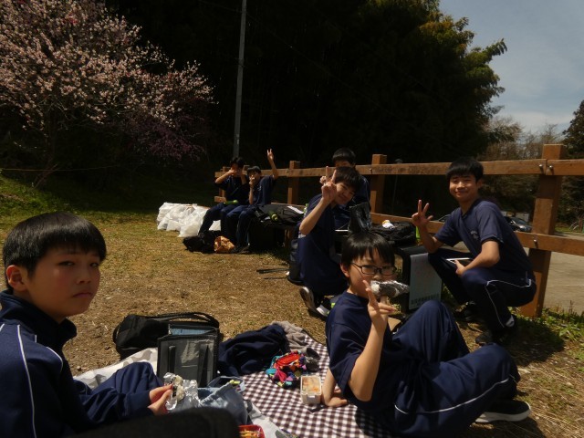 持参したお弁当を広げる生徒たちの顔には、達成感と笑顔があふれています。午後の学習活動では、この美しい景観を五・七・五の言葉に込める「俳句づくり」やフォトコンテストのための「写真撮影」を行っています。郷土の素晴らしさを心と記録にしっかりと刻みました。