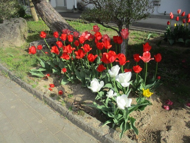 用務員さんが愛情を込めて育ててくださったチューリップが見頃を迎え、花壇に色とりどりに咲いています。月曜日は各学年で「朝の読書」を行っています。集中して本に向き合っています。
