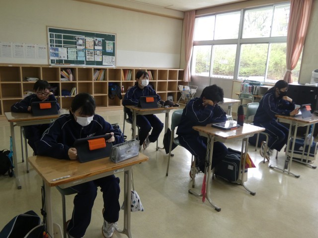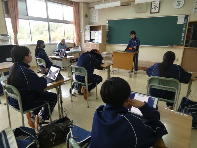 清掃終了後、各学年で生徒総会に向けた要項審議が行われました。1年生の教室では、初めての経験に担任の先生が丁寧に手順について説明をし、2・3年生の教室では、代表生徒が自ら進行し、活発な話し合いが進められていました。経験を自信に変え、先生に頼らず自分たちで議論を深める頼もしい姿を見せてくれました。