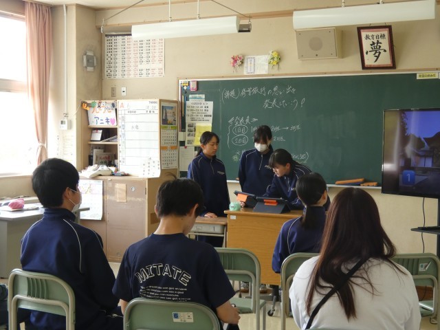 3年生の学級活動では、修学旅行の事後学習発表会を行いました。各班の発表は写真を活用するなど工夫が凝らされており、どれも見応え十分でした。特に盛り上がったのは「質問コーナー」です。次々と質問ボールが飛び交う中、保護者の皆様からも鋭い質問が飛び出し、大いに盛り上がりました。修学旅行での学びを学年全体で共有できた素晴らしい時間となりました。