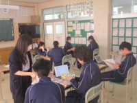 画像・上(先週になります)が、2年技術科の「ウッディラジオ(キット)の製作」の様子です。作業台に2人掛けで、電気はんだごても一人1台使うことができるのは、安全面でも効率面でも大変よい環境です。また、授業者は一人ひとりに目が行き届きやすく、何かあればすぐに対応していました。