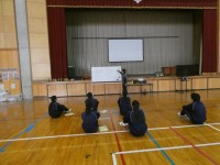 選手は一人ずつ自己紹介で、端的に自分の大会への抱負を述べました。生徒会代表から激励のことばを受け、部長のお礼のことばに士気の高まりを感じました。
