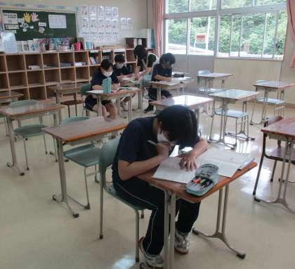 質問学習とは、各教科の先生方に勉強していてわからないところ、疑問に思ったところなど、自由に質問できる時間です。全学年集中して取り組んでいました。