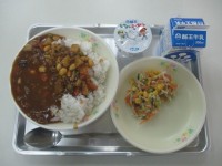 バターロール、ミネストローネ、フリットチキン、星のコロッケ、ブロッコリーとカリフラワーのサラダ、牛乳でした。(877kcal)