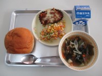 今日の献立は、わかめごはん、牛乳、鶏そぼろ入り厚焼玉子、笹かまと野菜のみそマヨネーズ和え、油揚げと玉ねぎのみそ汁です。笹かまぼこは、たんぱく質が豊富で骨や歯のもとになるカルシウム、貧血予防に効果のある鉄分なども含まれているそうです。今日もおいしい給食ごちそうさまでした。