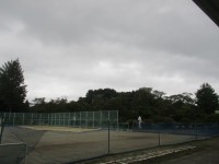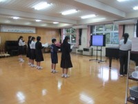 今日は雲がありますが空は青くてきれいです。元気よく挨拶運動実施中!